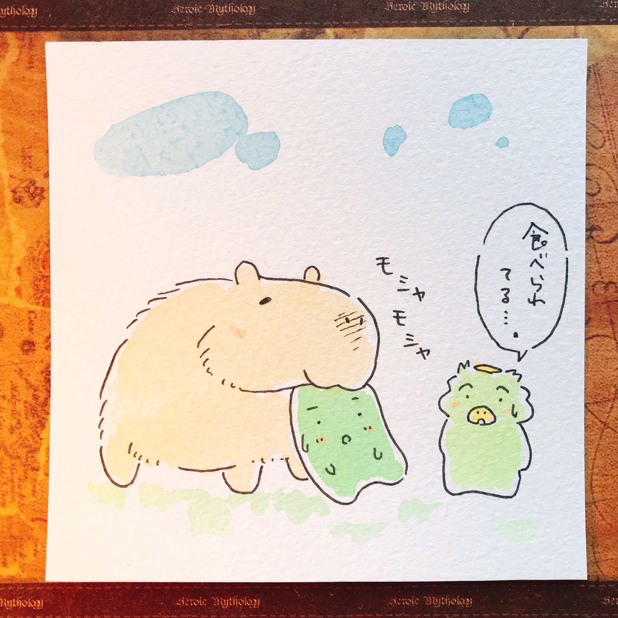 カッパ創作基地 お久しぶりのケロくんときゅうり君です カッパのケロくんときゅうりくん ゆるいイラスト かわいい イラスト イラスト 癒し 落書き 食べ物 食べ物イラスト 長野市 絵描きさんと繋がりたい 水彩 絵 カピバラ カピバラ